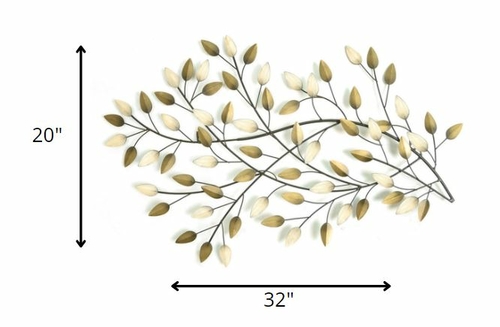 Transform your living space with the exquisite Gold and Beige Metal Blowing Leaves Wall Decor. This stunning piece of handcrafted metal wall art is designed to bring a touch of elegance and warmth to any room. With its unique profile detailing of blowing leaves, this decor item not only serves as a beautiful focal point but also enhances the overall ambiance of your home.