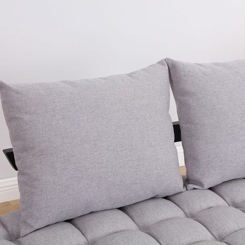 - MODERN STYLISH DESIGN: The modern, minimal design, with plush cushions, black oak wood fixtures, and two large accent pillows, will stylishly fit into any home decor.