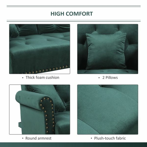 HOMCOM Modern Fabric Sectional Sofa Bed Set Double Sofa and Chaise Lounge with Adjustable Backrest and 2 Removable Cushions for Living Room Waiting Room Dark Green