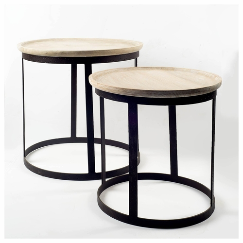 Introducing the Light Brown Wood Round Top Accent Table with Black Metal Base, a perfect blend of style and functionality. This accent table is designed to enhance your living space with its elegant round top made from naturally finished Indian mango wood. The unique distressed finish of the wood adds character and charm, making it a standout piece in any room.