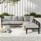 - [Sleek Modern Design]Designed with a sleek, low profile, this 2-piece sectional sofa set for five people features a sturdy frame made of solid acacia wood, known for its natural moisture resistance. The fluffy, durable cushions are specially treated to resist water and UV damage. The back and armrests are elegantly wrapped in hand-woven regatta rope, showcasing a distinctive crosshatch pattern that creates an elegant, modern and inviting outdoor seating area.