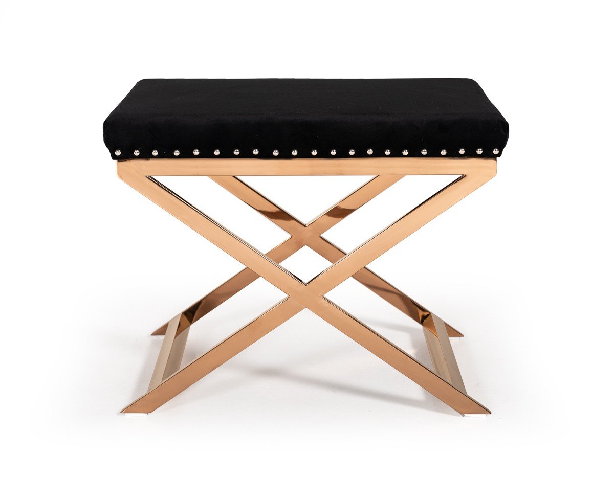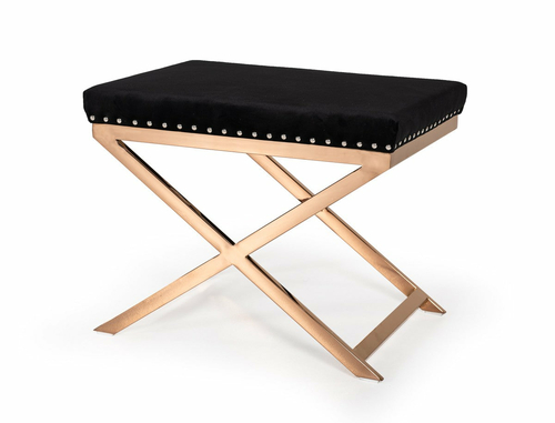 Introducing the Modern Black Velvet with Nailhead Trim and Rose Gold Stool, a stunning addition to any contemporary living space. This stool not only provides extra seating but also serves as a chic accent piece that enhances your home decor. Upholstered in luxurious black velvet, the stool offers a plush and comfortable seating experience, making it perfect for entertaining guests or simply relaxing at home.