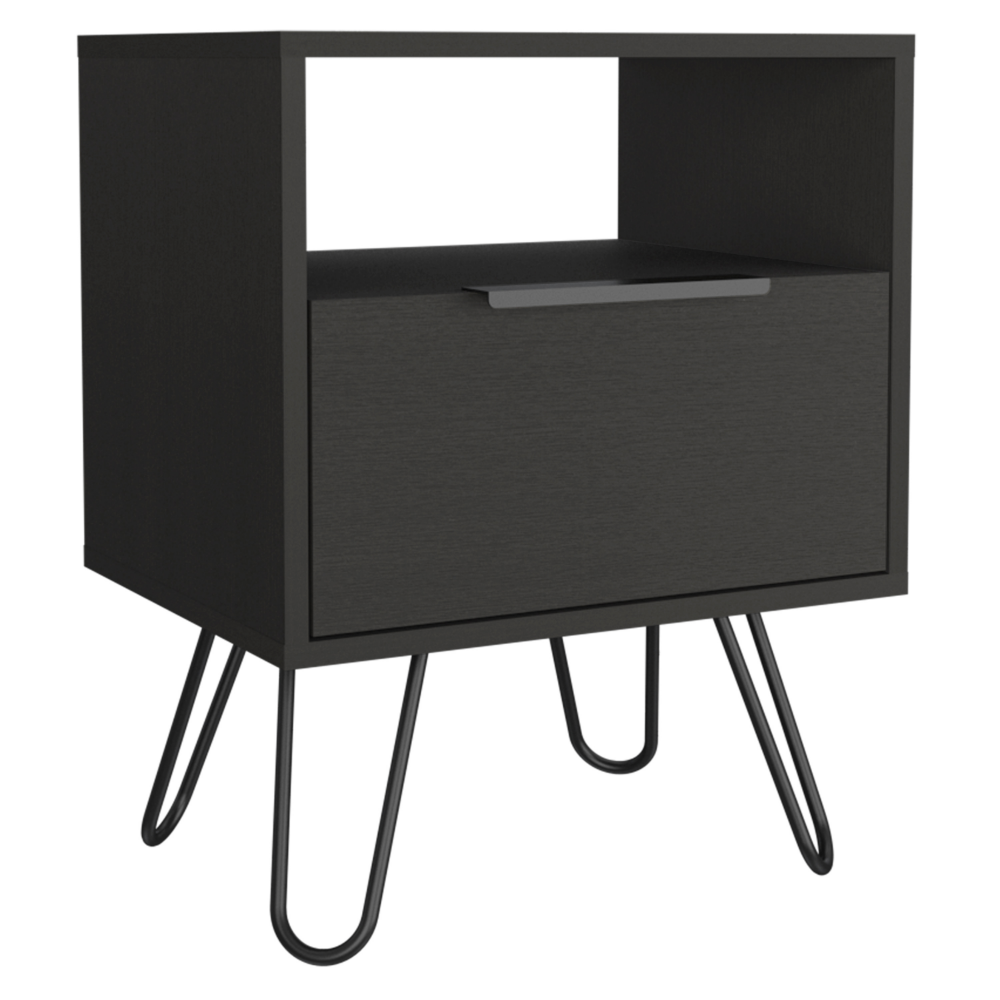 The ergonomic design of the Skyoner Nightstand ensures that it is not only visually appealing but also highly functional. The single drawer offers ample storage for your nighttime essentials, such as books, glasses, or personal items, keeping your bedside organized and clutter-free. The hairpin legs add a touch of modern flair while providing sturdy support.