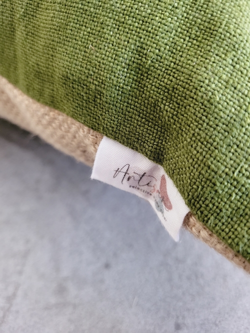 • Material: Front 100% Linen, Back Natural Jute with a hand-made jute braided Taseel on each corner.