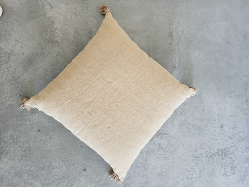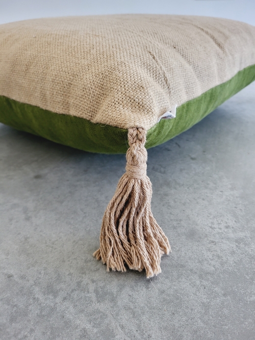 Floor Cushions are perfectly unique choices where space is generally limited, and spare seats are needed. Jute & Linen Floor Cushion is made of Natural linen and natural jute with handmade tassel accents on each corner.
