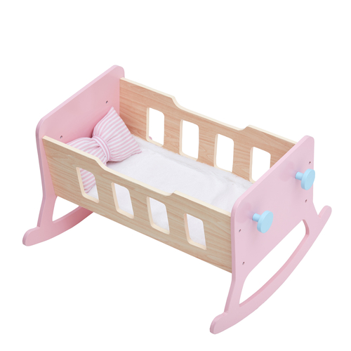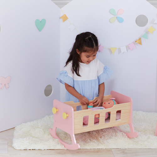 Dolls are our loved one's precious playthings and need to be cherished with love too. The Nordic Princess Baby Doll Cradle is the latest in comfort and eye-catching beauty. Cradle is manufactured with sturdy pieces of wood mixed with MDF and painted gorgeous hues of light pink and wood colours. Offer your dolls a supreme rocking experience and the ultimate in comfort today.
