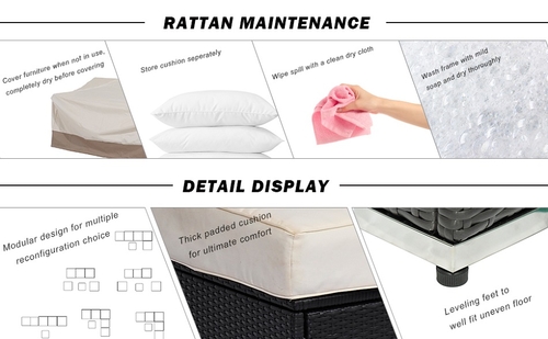 - ● Waterproof and UV resistant PE rattan, won't fade