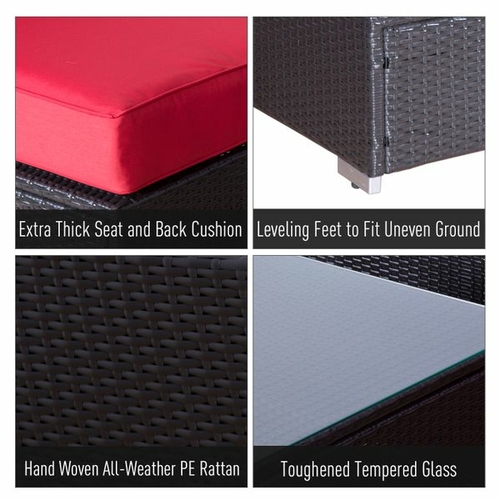 Create a perfect outdoor living space with our 9pc Outdoor Patio Rattan Wicker Sofa Sectional & Chaise Lounge Furniture Set. Built for both style and resilience, a rust-resistant aluminum frame adds support while heat and weather resistant PE coated rattan add a stylish facade.