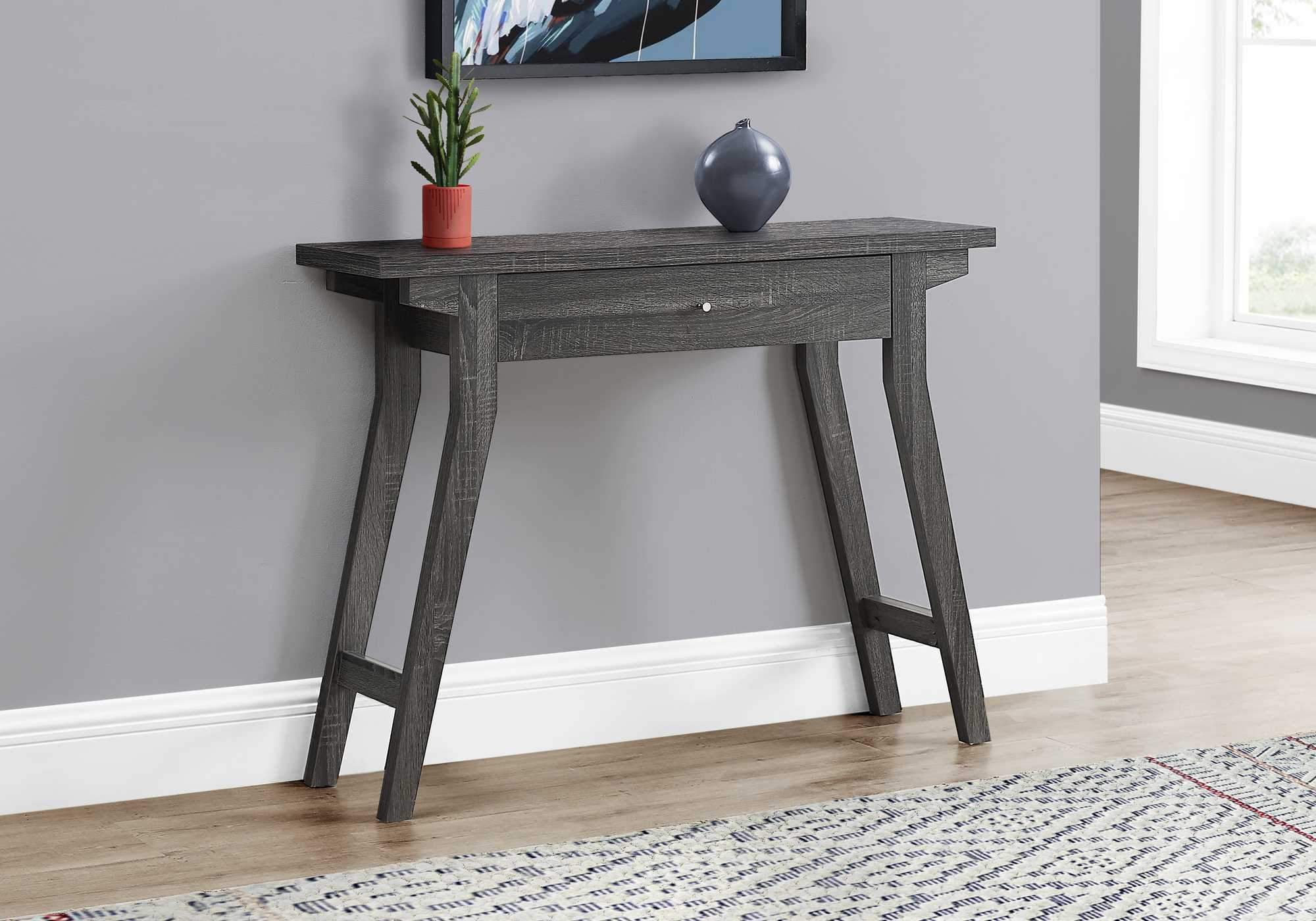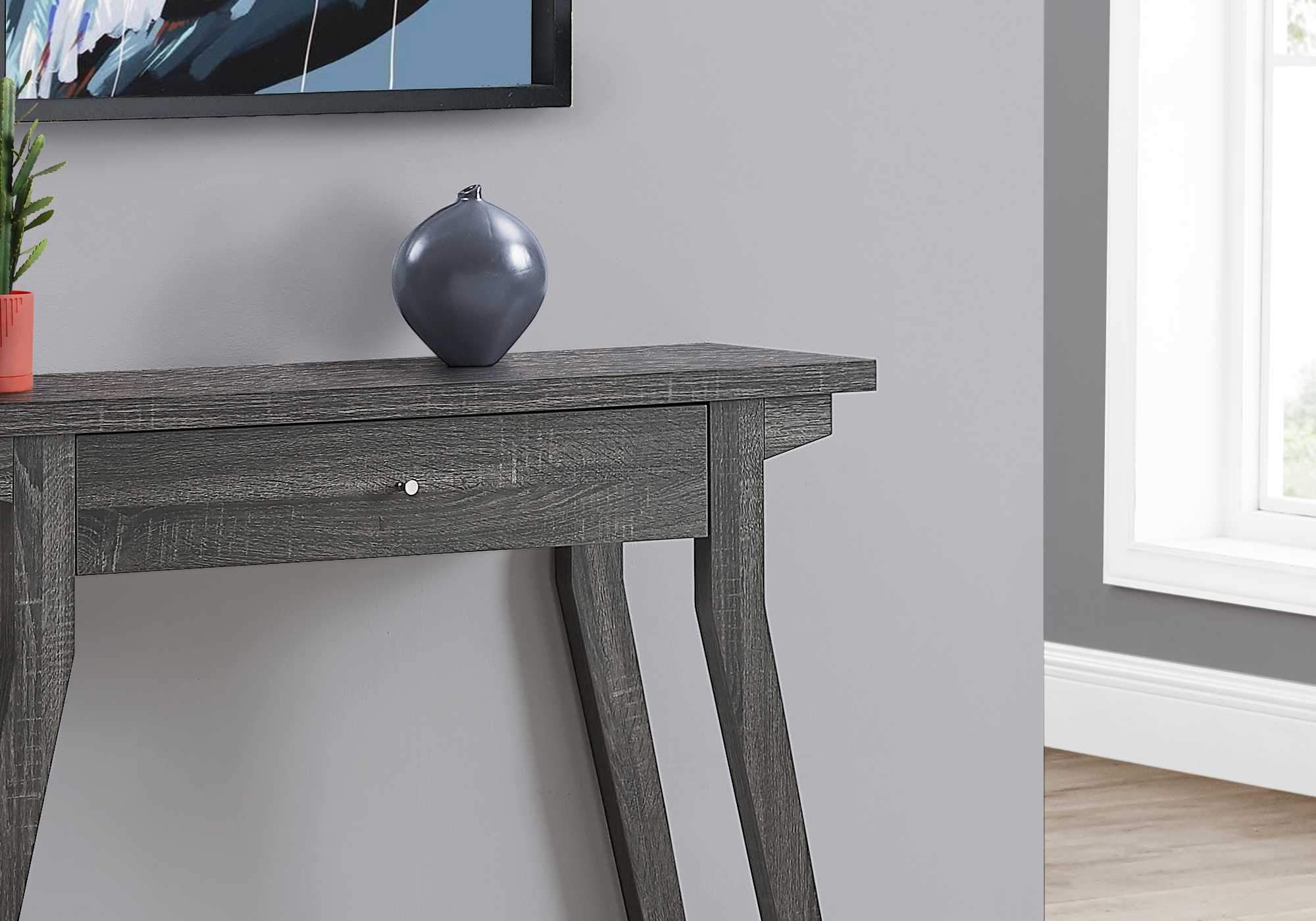 Enhance your home decor with our Rectangular Grey Accent Table with Storage Drawer, a perfect blend of style and functionality. This contemporary console accent table is designed to fit seamlessly into any hallway, living room, or office space, providing both aesthetic appeal and practical storage solutions.
