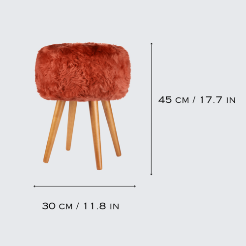 Red sheepskin stool with oak legs – a perfect blend of luxury and natural charm. A playful detail for a child's room. The luscious texture of the sheepskin adds a cozy and inviting feel, while the sturdy oak legs ensure durability and a timeless aesthetic.