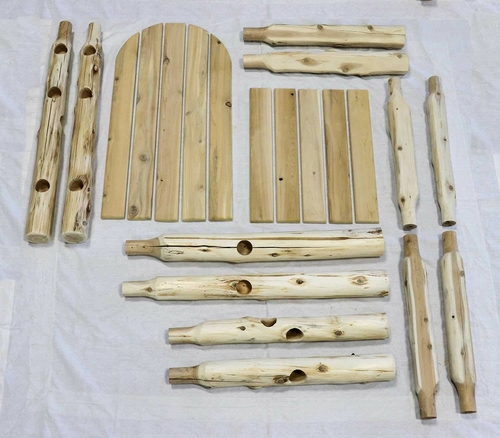 Each Rustic Cedar Adirondack Chair is handcrafted from high-grade northern white cedar, known for its durability and natural resistance to decay. The logs are meticulously hand-peeled to highlight the wood's unique character and grain, ensuring that no two chairs are exactly alike. This attention to detail in craftsmanship guarantees that you are investing in a piece that is not only beautiful but also built to last.