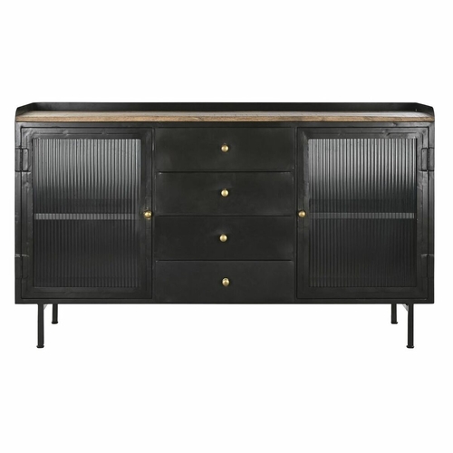 Dropship Sideboard DKD Home Decor Natural Black Golden Metal Mango wood (145 x