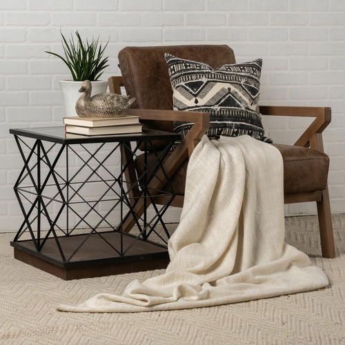 In summary, the Square Glass Top Side Table with Brown Wood and Metal Trestle Frame is a versatile and stylish addition to any home. Its quality materials, easy maintenance, and chic design make it a must-have for anyone looking to elevate their interior space.