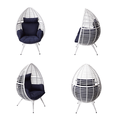The cushions are a stylish navy blue which offsets the white colour of the egg chair, giving the overall feel of the Hamptons!