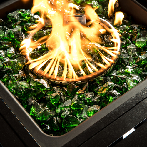 INCLUDES: 4kg/9lbs of tempered glass rocks. Continuous iridescent shimmer from daytime with the rays of the sun and at night with the flames.