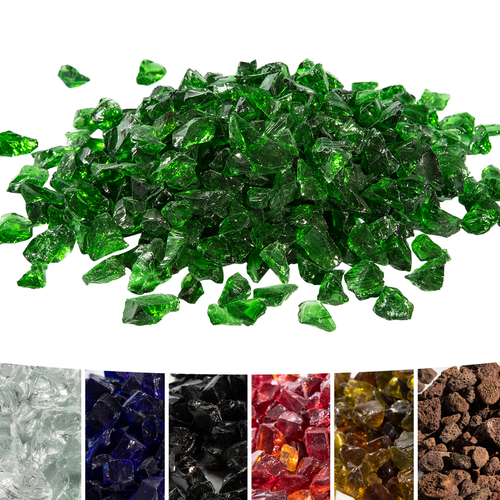 With the Teamson Home Green Lava Rocks add a touch of glamour to your gas fire pit by adding our Eco friendly and safe Lava Rocks. Made from tempered clear glass and fire resistant up to 600 °, these lava rocks will not melt, break or emit smoke. Designed to be used indoor or outdoor with Propane Gas Fire Pits, they are a great replacement for glass logs as these add ambience and creates a beautiful shimmer during the day and appears multicoloured at night when the gas firepit is in use. Perfect to give your firepit a touch of class. These Lava Rocks can also be used in aquariums and for landscaping. Can be easily cleaned with water and vinegar.