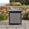 2 IN 1 GAS FIRE PIT TABLE 76CM: This large, square, tall outdoor fire pit is has adjustable flames from low to high and hidden control panel with electronic push button piezo ignition makes this grey fire-pit the perfect addition to light up the garden. Requires 1x AAA battery for ignition (Battery included). A 9kg propane tank will last approximately 11.5 hours at a continuous burn at the maximum output.