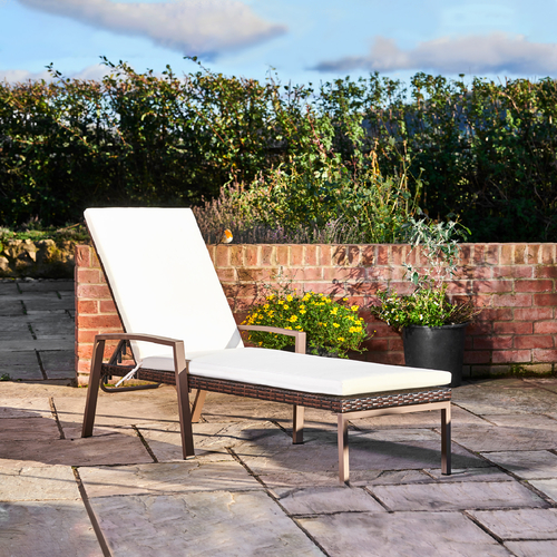 This recliner stylish twin set, is the perfect ingredient that will add luxury and comfort to any garden or poolside space. With armrests and quality made sunbed cushions, our outdoor wicker lounger set has 6 adjustable head rest positions for optimum relaxation.