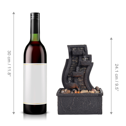 Experience spa-like tranquility right in your home with the Teamson Home tabletop mini waterfall water fountain which is suitable for indoor spaces especially the living room as it will create a nice-living and comfortable atmosphere. Embrace the soothing ambiance of flowing water cascading and set the tone for a nice relaxing evening. This indoor water feature is made from durable rust-resistant polyresin making this tabletop water fountain is a perfect addition to any indoor space.