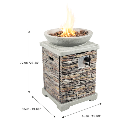 51CM GAS FIRE PIT: This small column fire bowl pit has adjustable flames from low to high allow you to intensify the heat and easy start hidden electronic piezo ignition enables you to light this grey fire pit up in seconds with ease which make this the perfect addition to light up the garden. Requires 1x AAA battery for ignition (Battery included).