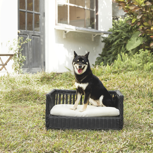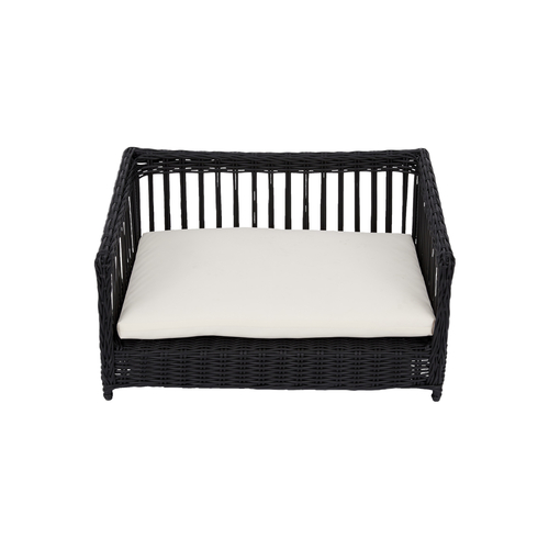 DESIGN: Featuring a lavish brown wicker rattan basket effect , this rectangular pet bed or sofa lounger can be used indoors or outdoors in the garden, lawn, patio or decking. Suitable for cats and small dogs up to 30kg.