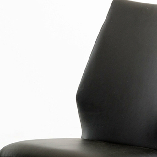 Two elegant black leatherette dining chairs with steel frames, showcasing a modern design suitable for any dining area.