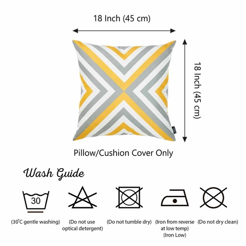 The Yellow and Gray Geometric Decorative Throw Pillow Cover features a hidden zipper closure, providing a clean and seamless look all the way around. This thoughtful design element not only enhances the aesthetic appeal of the pillow cover but also makes it easy to insert and remove pillow inserts, which are sold separately. The 18" x 18" (45cm x 45cm) size is perfect for standard throw pillows, allowing you to mix and match with other decorative pillows in your collection.