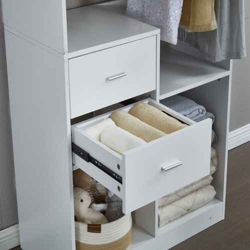 GraceGrove freestanding closet system is designed for simple assembly, making it a breeze for anyone to set up, even without prior experience. The included instruction manual provides clear, step-by-step guidance, ensuring a smooth and straightforward installation process. So ditch the worries and embrace the joy of a well-organized closet in no time!