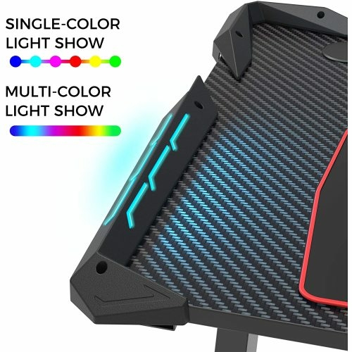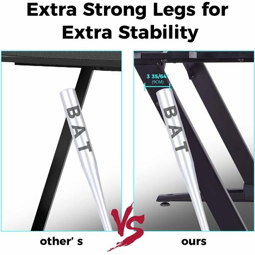 The gaming table boasts a super-strong metal support frame with F1 car inspired balancing levers, stabilizing your battle station from wobbling under the extreme gaming condition.