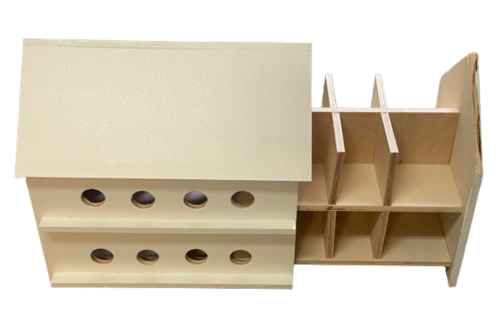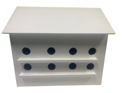 Gorgeous Martin Birdhouse. Dimensions: 17.5" L x 14" W x 16" H. 2 Floors. 16 Rooms. Room Hole Size: 2 ". Includes a stand in front of holes for birds to stand on. This birdhouse can be used as a stand alone or installed to a pole for elevation. Handmade In The USA. Handmade from wood and extremely durable. Hand painted and it can be painted over if one desires to add their own design to it. Birdhouse can be opened for cleaning by removing the 2 visible screws on the side. Similar Martin Birdhouses sell for $199 - $299 at retail stores.