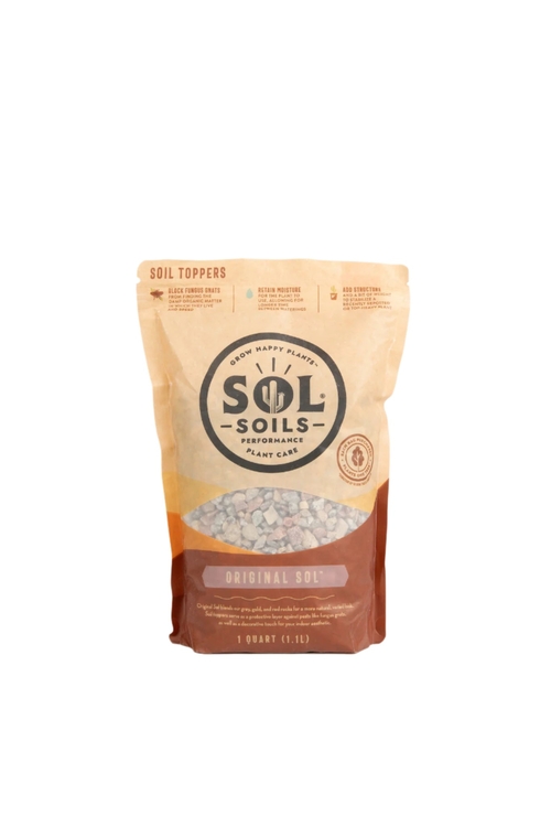 The Original Sol Topper from Sol Soils is the perfect addition to your indoor gardening toolkit. Designed specifically for potted cacti, succulents, and houseplants, this soil topper not only enhances the aesthetic appeal of your plants but also serves a functional purpose. Made from a unique blend of grey, gold, and red rock, the Original Sol Topper creates a visually striking landscape that complements the natural beauty of your plants. This decorative layer is more than just a pretty face; it acts as a protective barrier against pests and bugs, helping to keep your plants healthy and thriving.