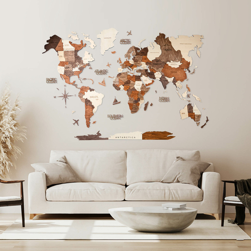 The 3D Wooden World Map Terra is not only visually appealing but also packed with unique features that set it apart from other wall decor options. Each map is handmade, ensuring that every piece is unique and crafted with care. The natural wood finish adds a touch of elegance and warmth to any room, making it a versatile choice for various decor styles.