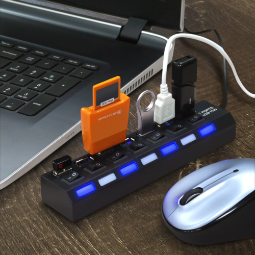 7-Port USB 3.0 Hub With Switch Adapter LED Light