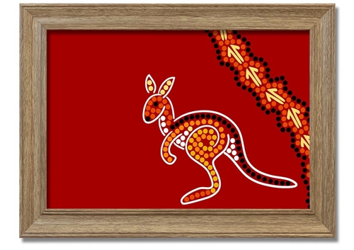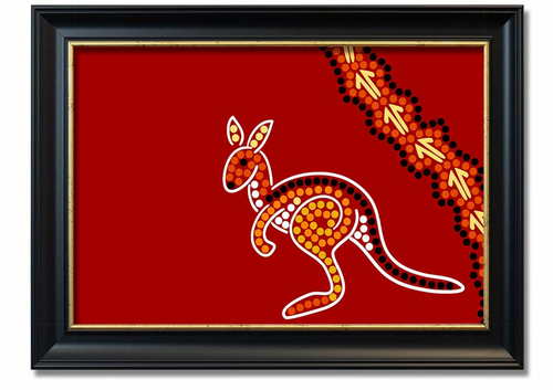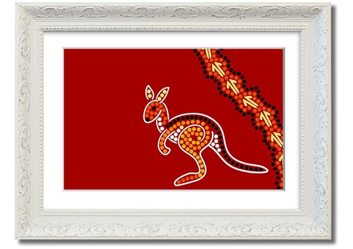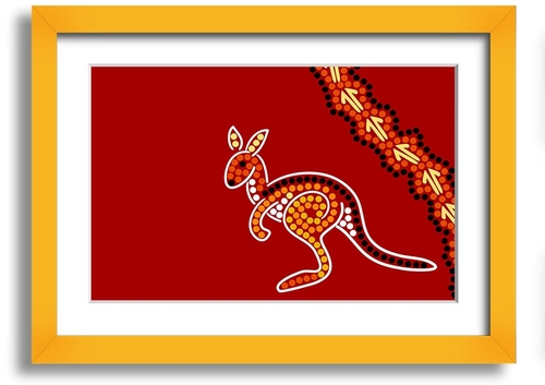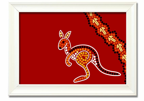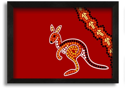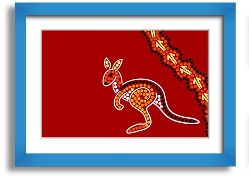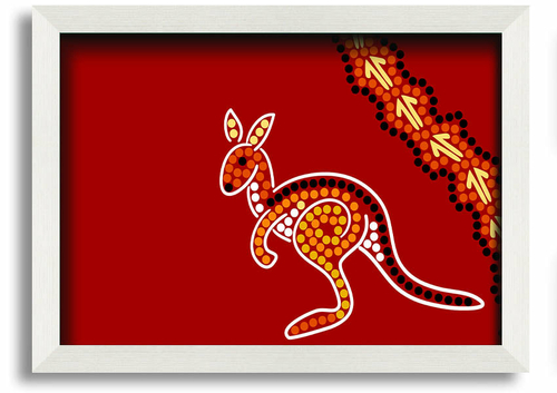 To suit your personal style and home decor, the Aboriginal Native Australian Kangaroo framed print is available in multiple frame colors. Whether you prefer a classic black frame, a warm wooden finish, or a sleek white frame, you can choose the option that best complements your space. This versatility makes it an ideal choice for any room in your home.