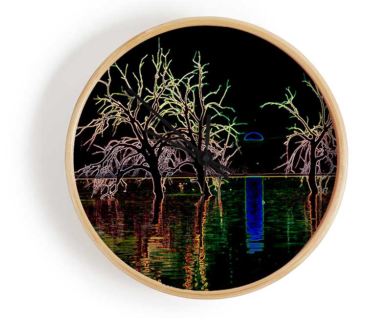 Introducing the Abstract Neon Landscape 15 clock, a stunning addition to your home decor that combines functionality with artistic flair. This uniquely designed clock is crafted from natural bamboo, offering a modern twist on the traditional timepiece. Its vibrant abstract neon landscape design not only tells time but also serves as a captivating piece of art that enhances any space.