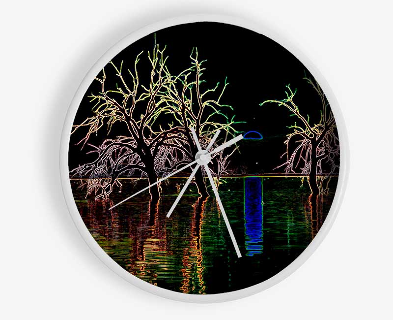 The Abstract Neon Landscape 15 clock is available in three stylish frame colors: black, white, and natural bamboo. This variety allows you to choose the perfect match for your existing decor. Furthermore, you can select between black or white hands, giving you the flexibility to customize the clock to your liking. This attention to detail ensures that your clock is not just a timepiece but a reflection of your personal style.