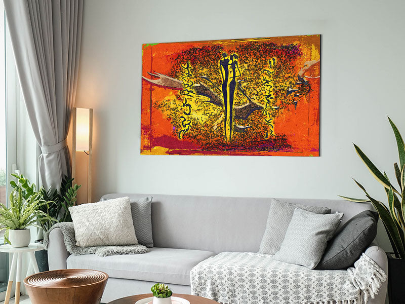 Aluminium dibond is a composite material made of two layers of aluminium enclosing a non-aluminium core. This construction provides a lightweight yet sturdy base for your artwork. The brushed finish adds a unique texture that enhances the colors and details of the African tribal design, making it stand out in any setting. Additionally, the material is resistant to warping and fading, ensuring that your art piece remains vibrant for years to come.