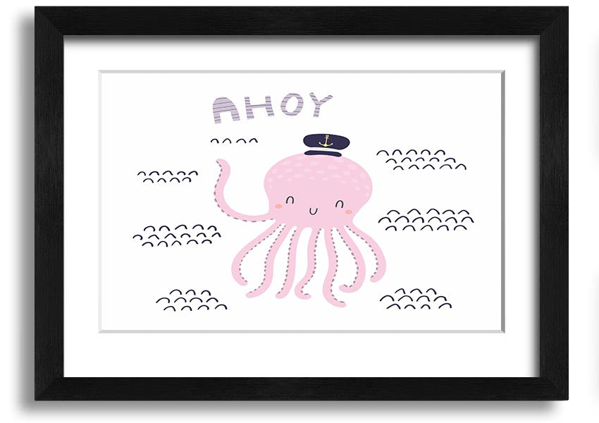 One of the standout features of the Ahoy Octopus framed print is its availability in multiple frame colors. Whether you prefer a classic black frame, a rustic wooden finish, or a sleek white frame, you can choose the perfect option that complements your interior design. This versatility allows you to seamlessly integrate the print into your existing decor, enhancing the overall aesthetic of your space.