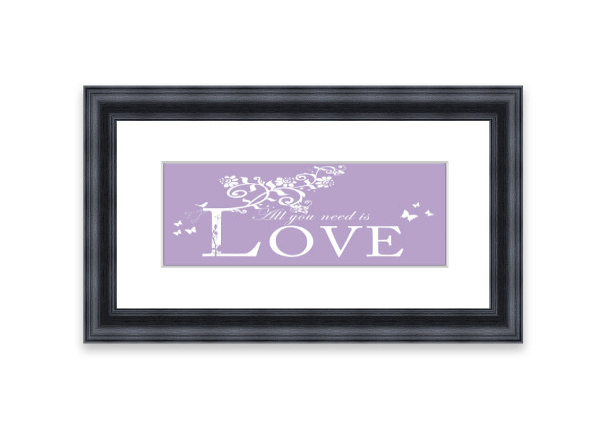 In summary, the All You Need Is Love Lilac framed print is a beautiful, handmade piece that adds a touch of love and elegance to any space. With its ready-to-hang feature and multiple frame color options, it’s a versatile choice for anyone looking to enhance their home decor.