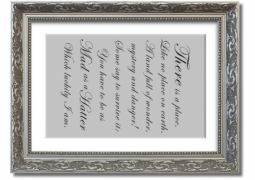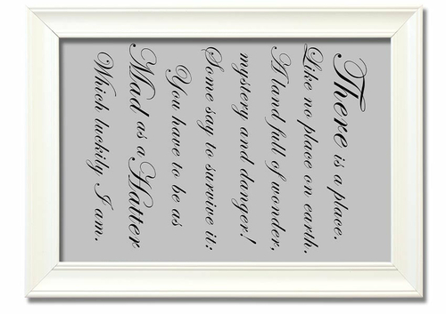 Explore the magic of Wonderland and bring a touch of fantasy into your home with the Alice In Wonderland As Mad As A Hatter Grey framed print. Order yours today and experience the joy of owning a piece of this timeless tale.