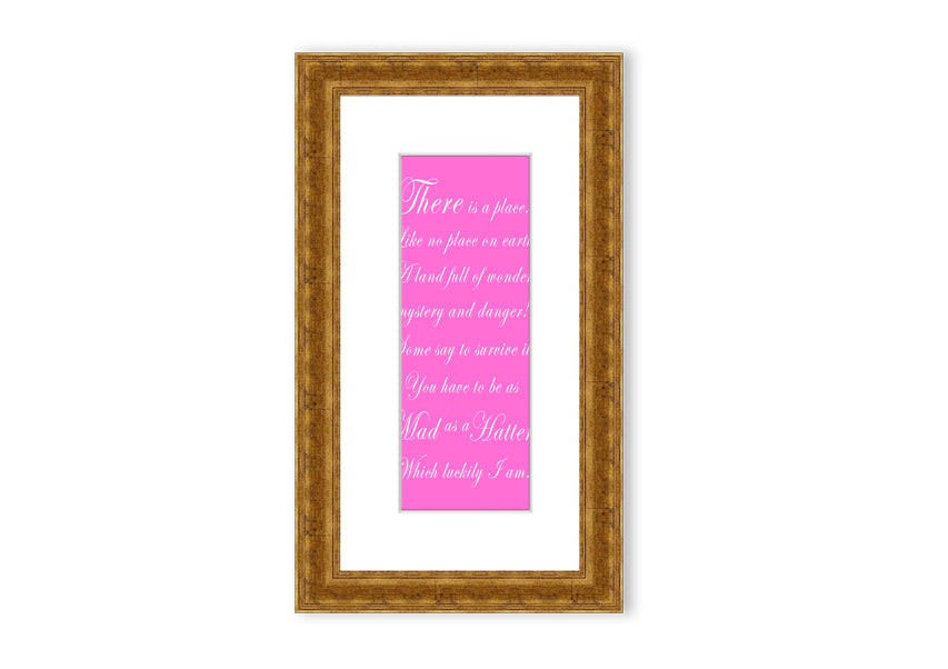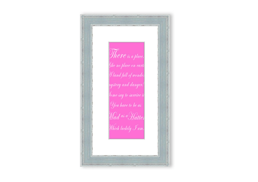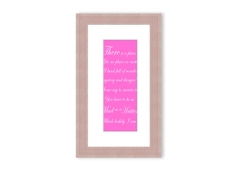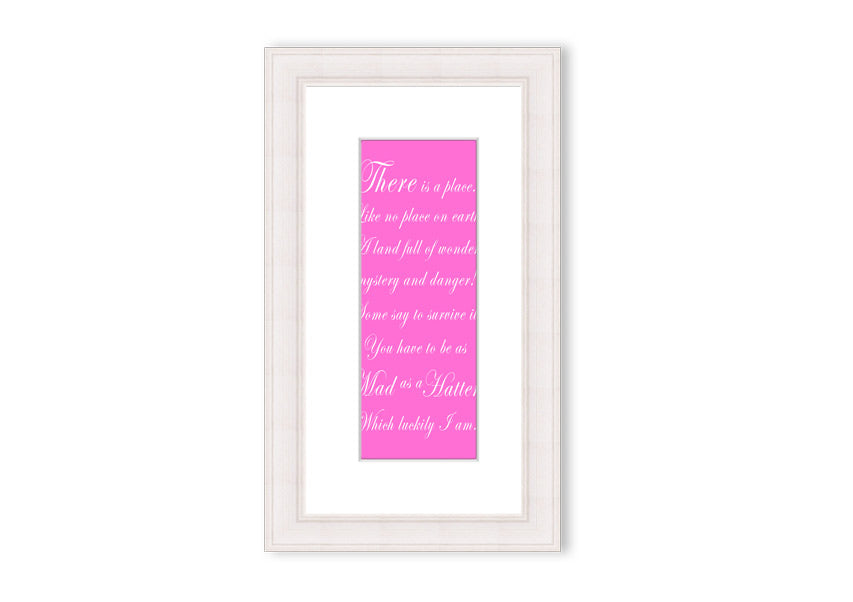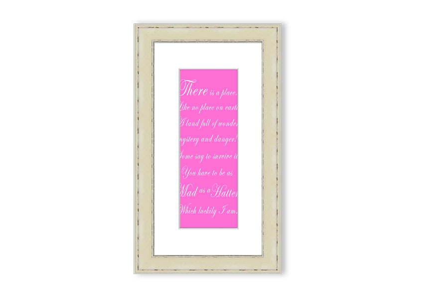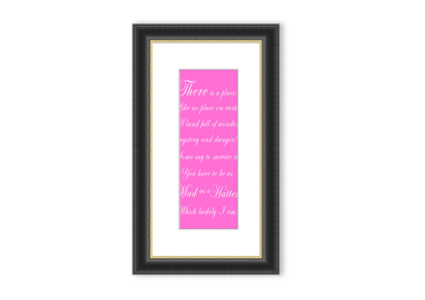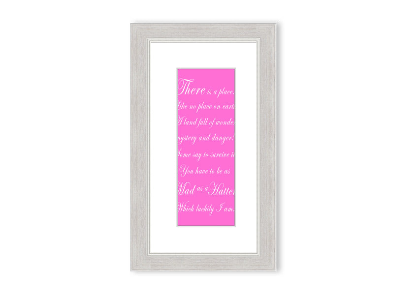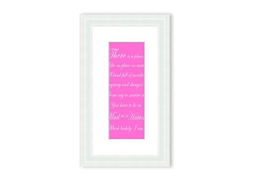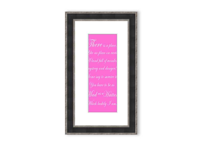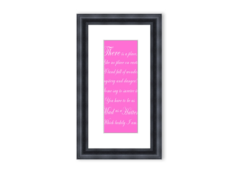 Introducing the stunning Alice In Wonderland As Mad As A Hatter Vivid Pink framed print, a must-have for any fan of Lewis Carroll's timeless tale. This vibrant artwork captures the whimsical essence of the Mad Hatter, bringing a splash of color and creativity to your living space. The vivid pink hues are sure to brighten up any room, making it an eye-catching centerpiece for your home or office.