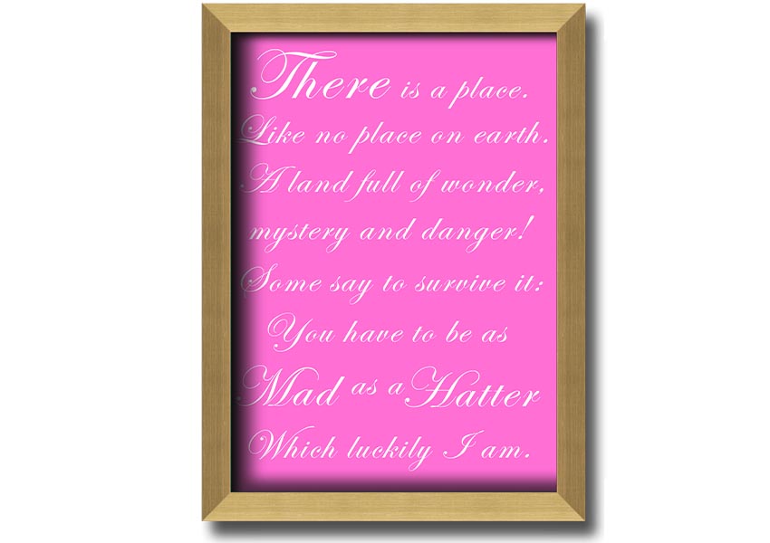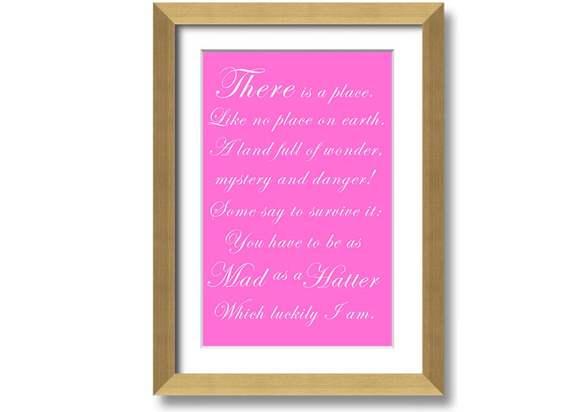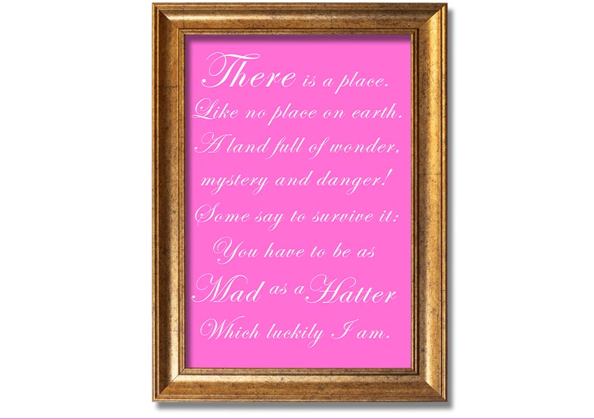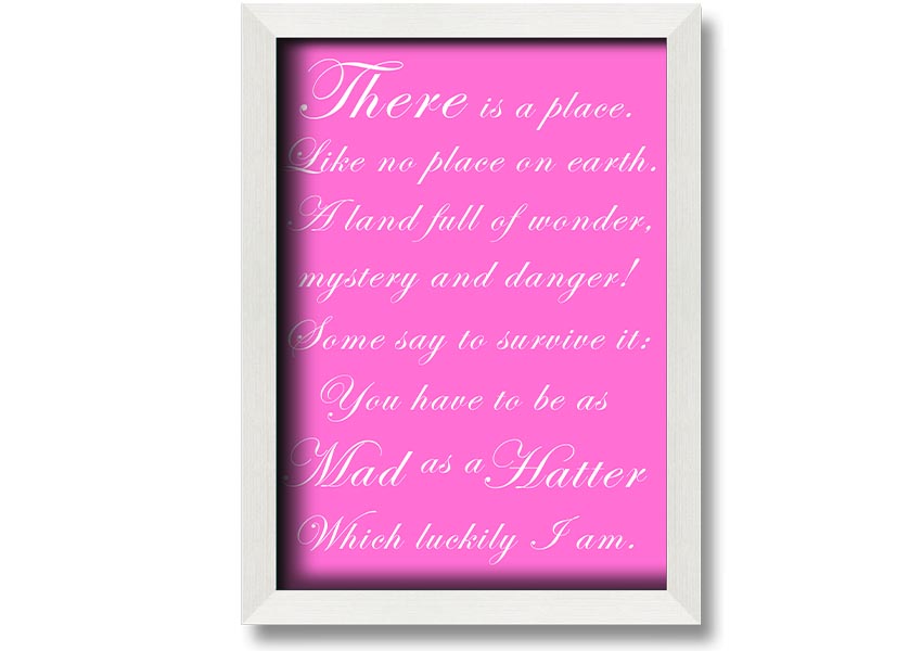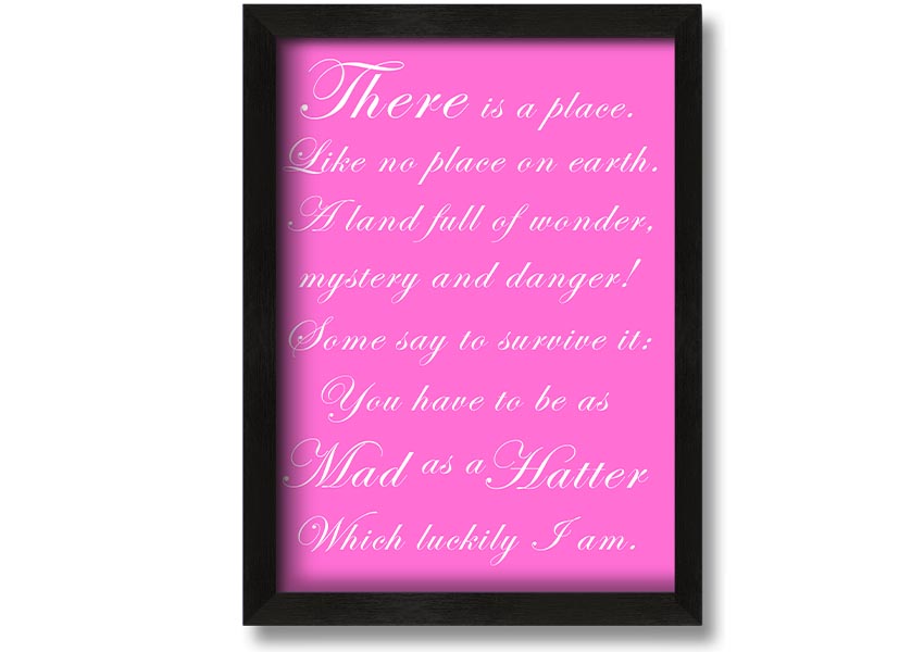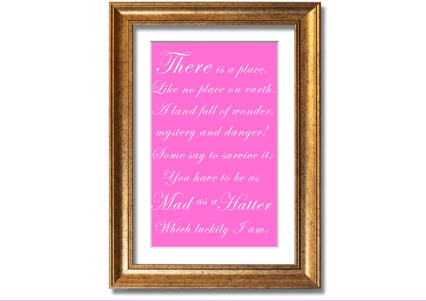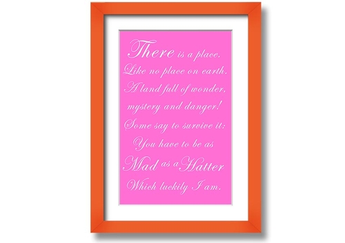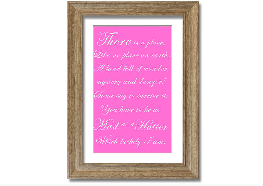 Introducing the stunning Alice In Wonderland As Mad As A Hatter Vivid Pink framed print, a delightful addition to any home or office space. This vibrant piece captures the whimsical essence of Lewis Carroll's beloved character, the Mad Hatter, in a striking pink hue that is sure to catch the eye of any visitor. Whether you're an avid fan of the classic tale or simply looking to add a pop of color to your decor, this print is the perfect choice.