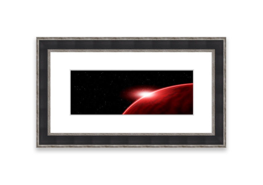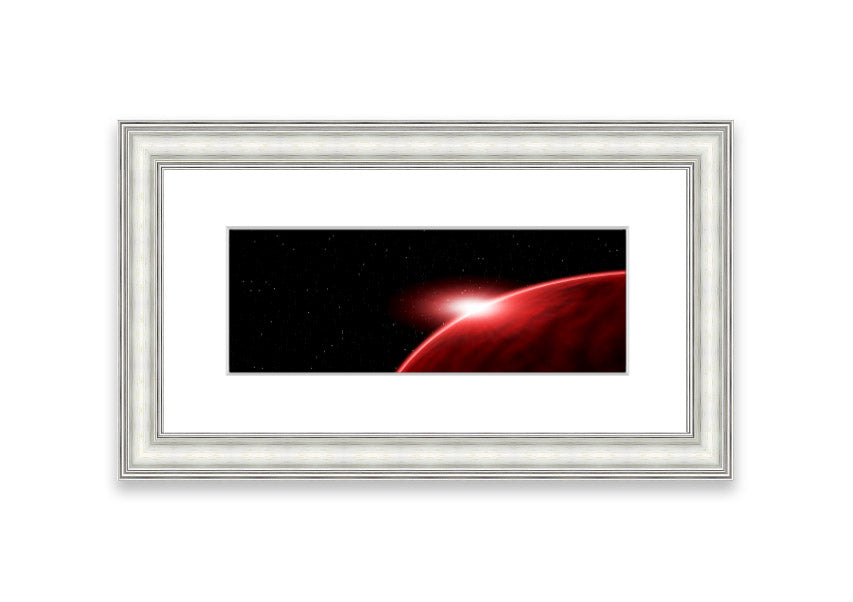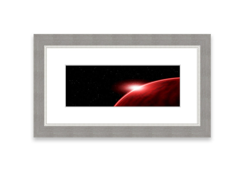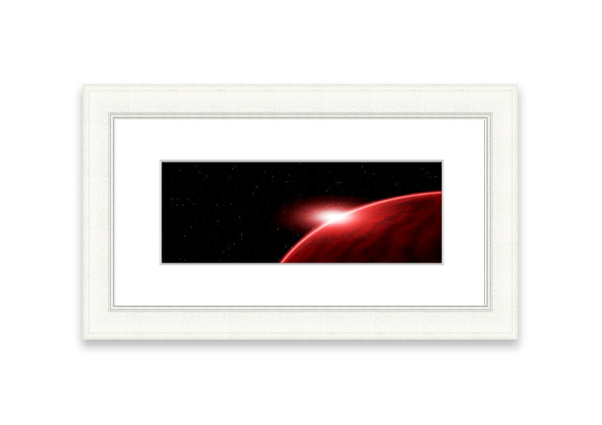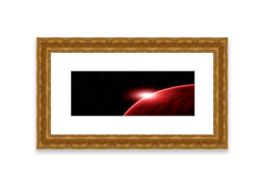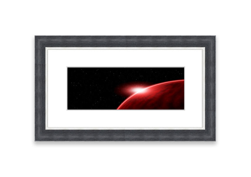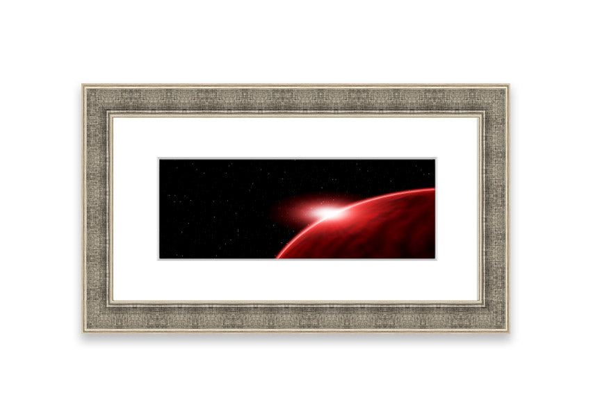 Framed print of Alien Sunrise 04 artwork, showcasing vibrant colors and unique design, ready to hang.