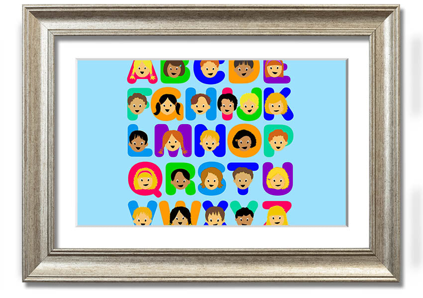 In addition to its aesthetic appeal, the Alphabet Children Baby Blue print serves an educational purpose. By introducing children to the letters of the alphabet in a visually stimulating way, this print can help foster early literacy skills. Parents and caregivers can use the print as a teaching tool, encouraging children to recognize letters and sounds while also sparking their curiosity about language and reading.