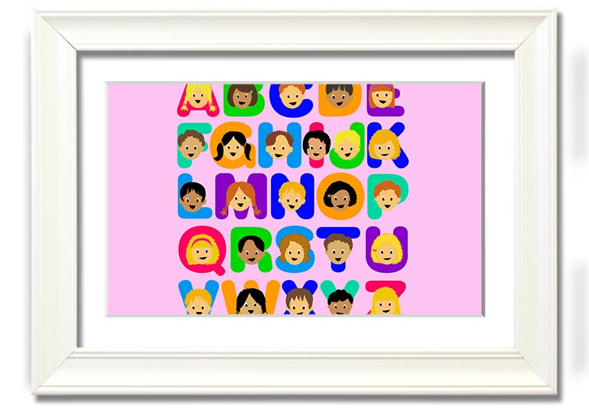 Maintaining the beauty of your Alphabet Children Pink framed print is simple. The high-quality materials used in its creation ensure that it is easy to clean and resistant to fading. A quick dusting with a soft cloth is all it takes to keep it looking fresh and vibrant. This low-maintenance aspect makes it a practical choice for busy parents.