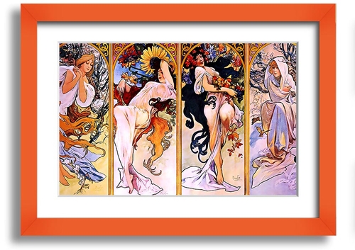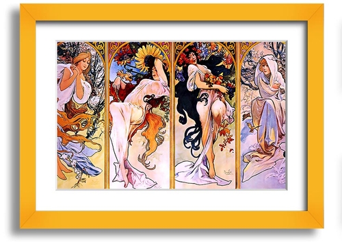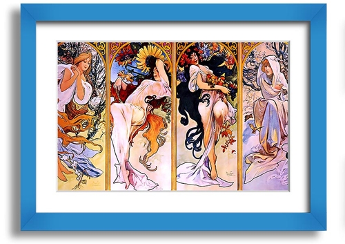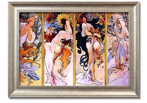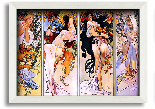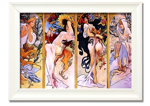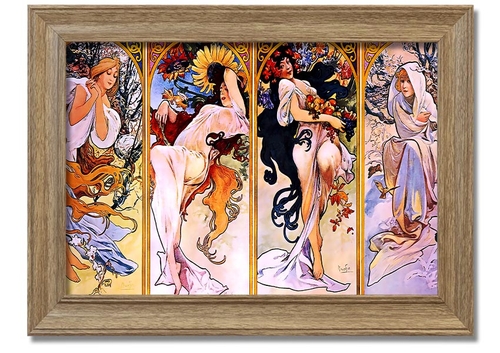 This print is versatile enough to complement various spaces, including living rooms, bedrooms, offices, or even galleries. Its vibrant colors and intricate details can serve as a focal point in your decor or blend seamlessly with other artworks. Whether you are an art enthusiast or simply looking to enhance your living space, the Alphonse Mucha Four Seasons framed print is an excellent choice.