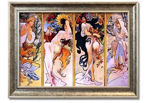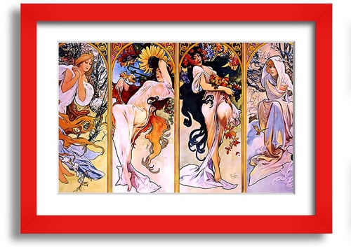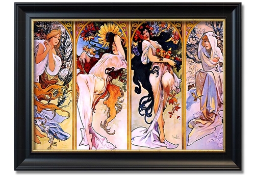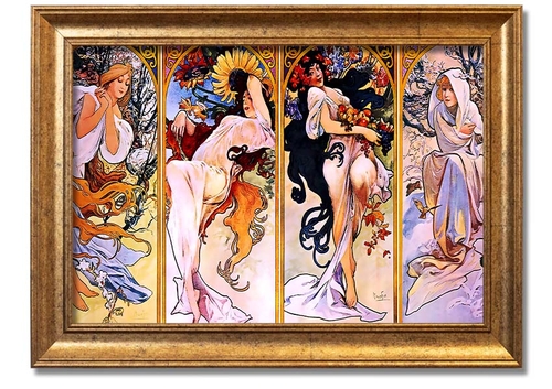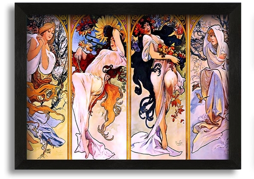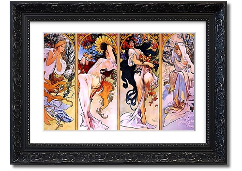 In summary, the Alphonse Mucha Four Seasons framed print is a stunning piece of art that combines beauty, quality, and convenience. With its handmade craftsmanship, ready-to-hang feature, and timeless design, it is an ideal addition to any home or a perfect gift for art lovers.