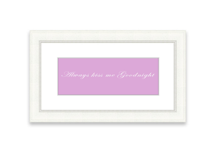 Always Kiss Me Goodnight Pink framed print in a stylish frame, showcasing a soft pink design with a heartfelt message.