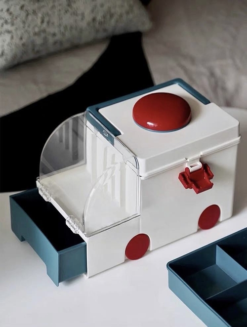 The Ambulance Family First Aid Kit is not just a storage solution; it's a delightful way to keep your health supplements organized. This unique medicine lock storage box is designed in the shape of a cute ambulance, making it a fun addition to your home or office. With its generous capacity, you can easily store and organize all your pills and health supplements in one place.