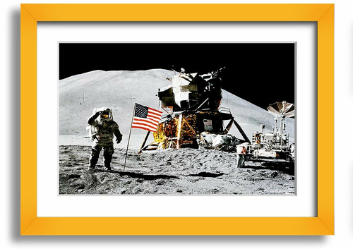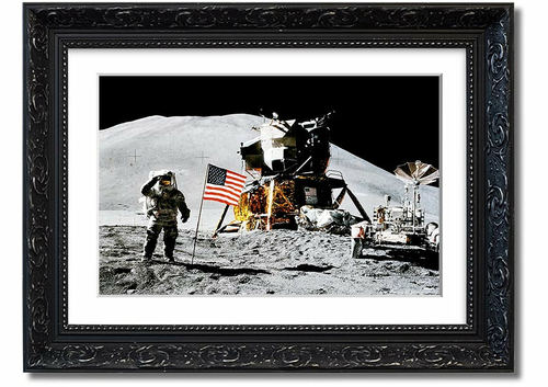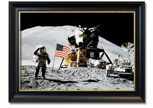 In summary, the American Moon Landing framed print is a beautiful and meaningful addition to any collection. Its high-quality craftsmanship, ready-to-hang convenience, and customizable frame options make it a standout choice for art lovers and history buffs alike. Celebrate the legacy of space exploration with this stunning print that pays homage to one of humanity's most significant milestones.